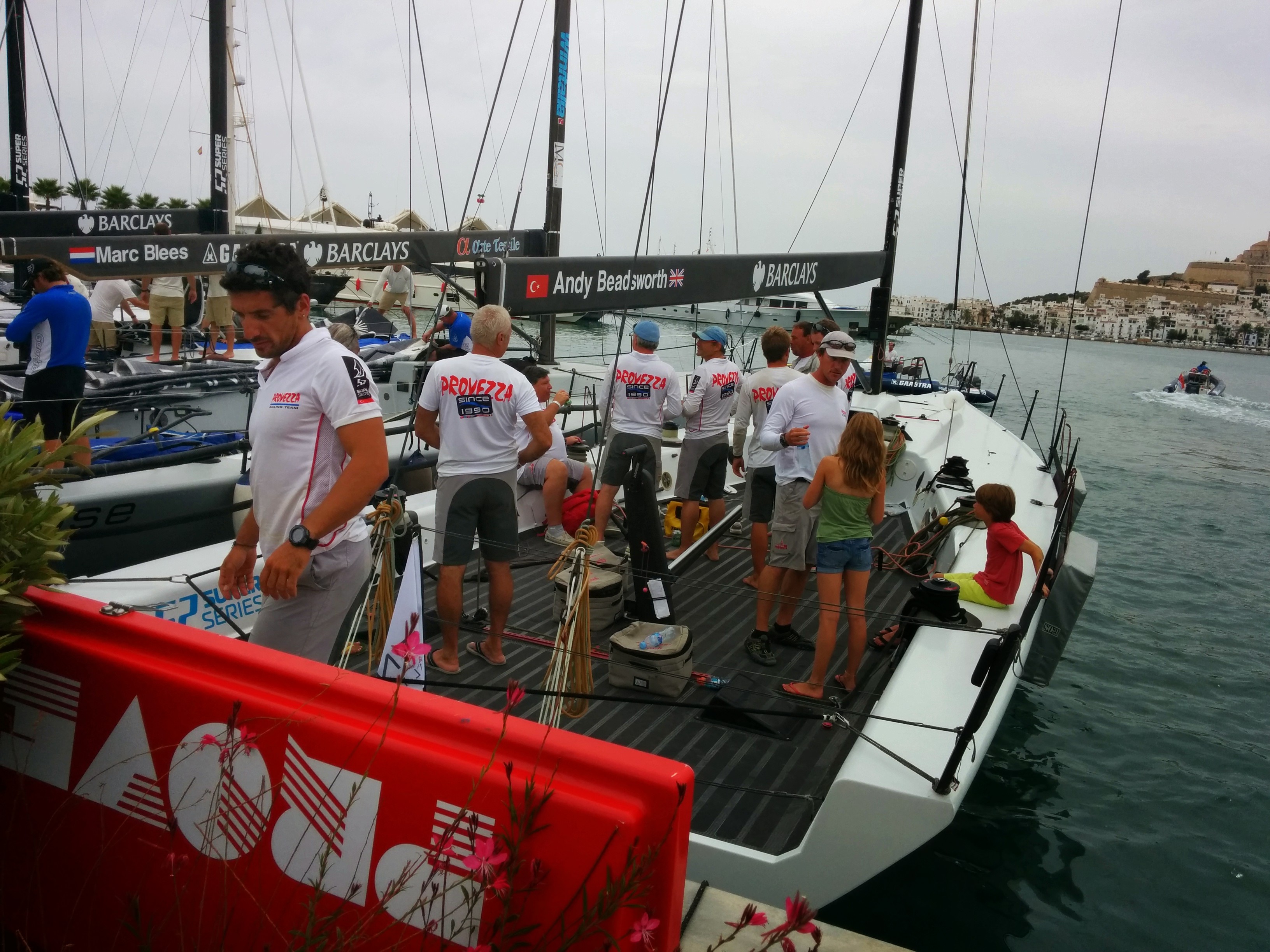 Our Ibiza days blended easily into Ibiza nights as we met Tony at the marina post-racing each day. All the TP52’s are docked together and directly across the dock area is a large, nice tent with complementary drinks of any possible variety, ice cream, sangria and large cones of fresh fish, calamari and chips. It was great to see so many of the sailors that we have known for many years and to catch up with them. They are a wonderful group of guys with whom Tony works all year, and is truly an honor to know them.