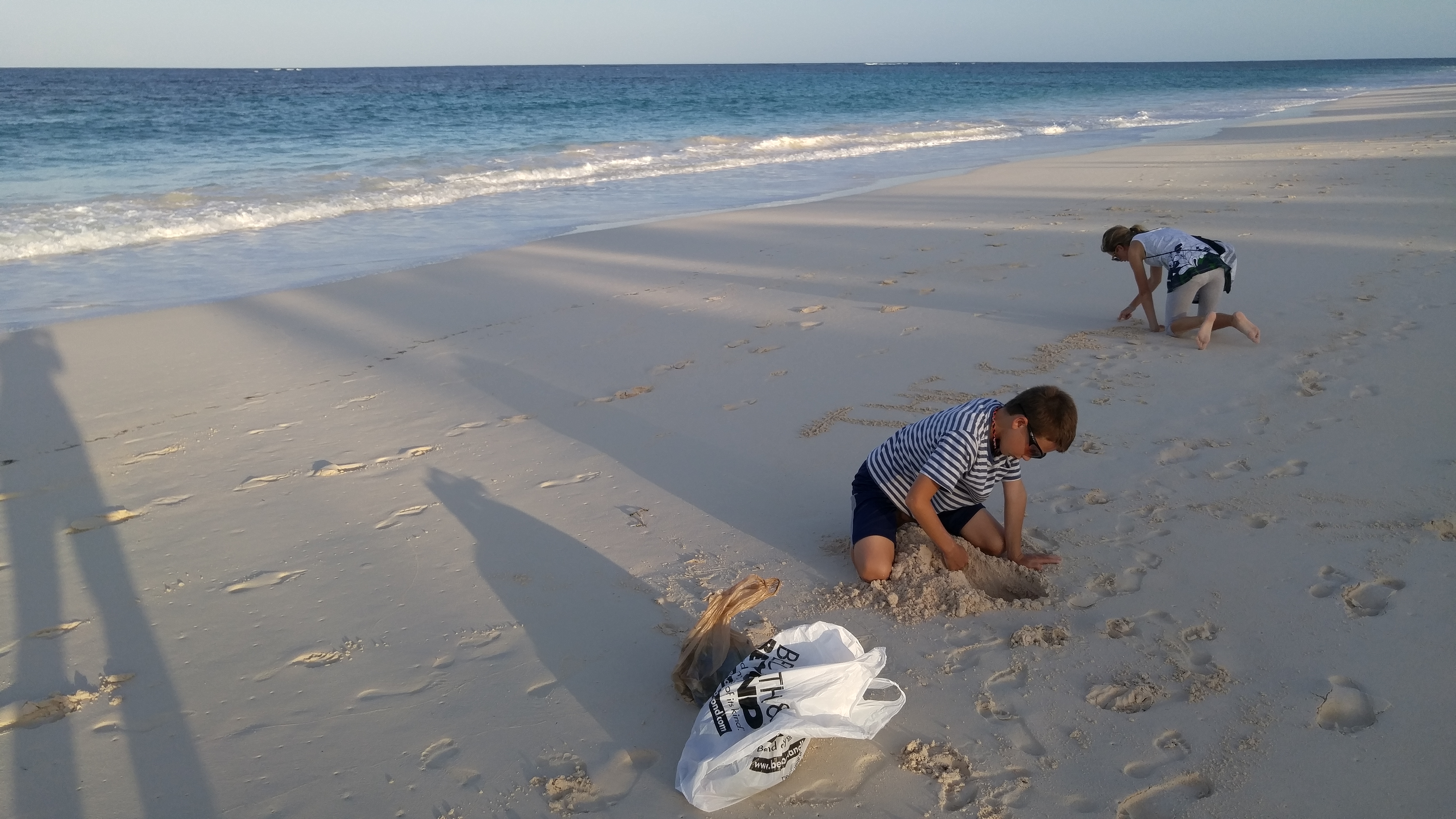 The beaches are beautiful on Elbow Cay and easily accessible. Above the kids play around after picking up trash at dusk.