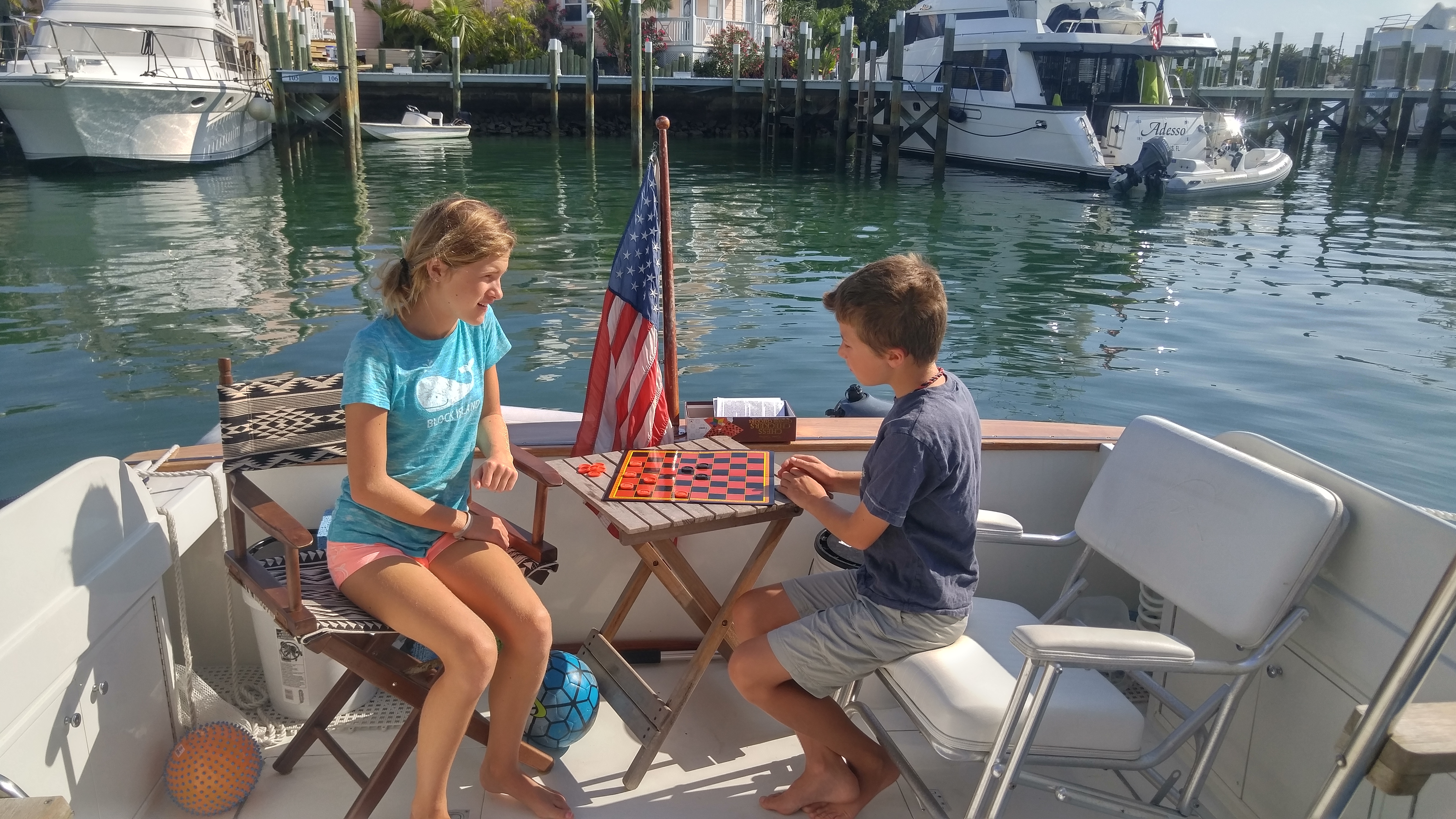 Playing checkers in the aft cockpit.