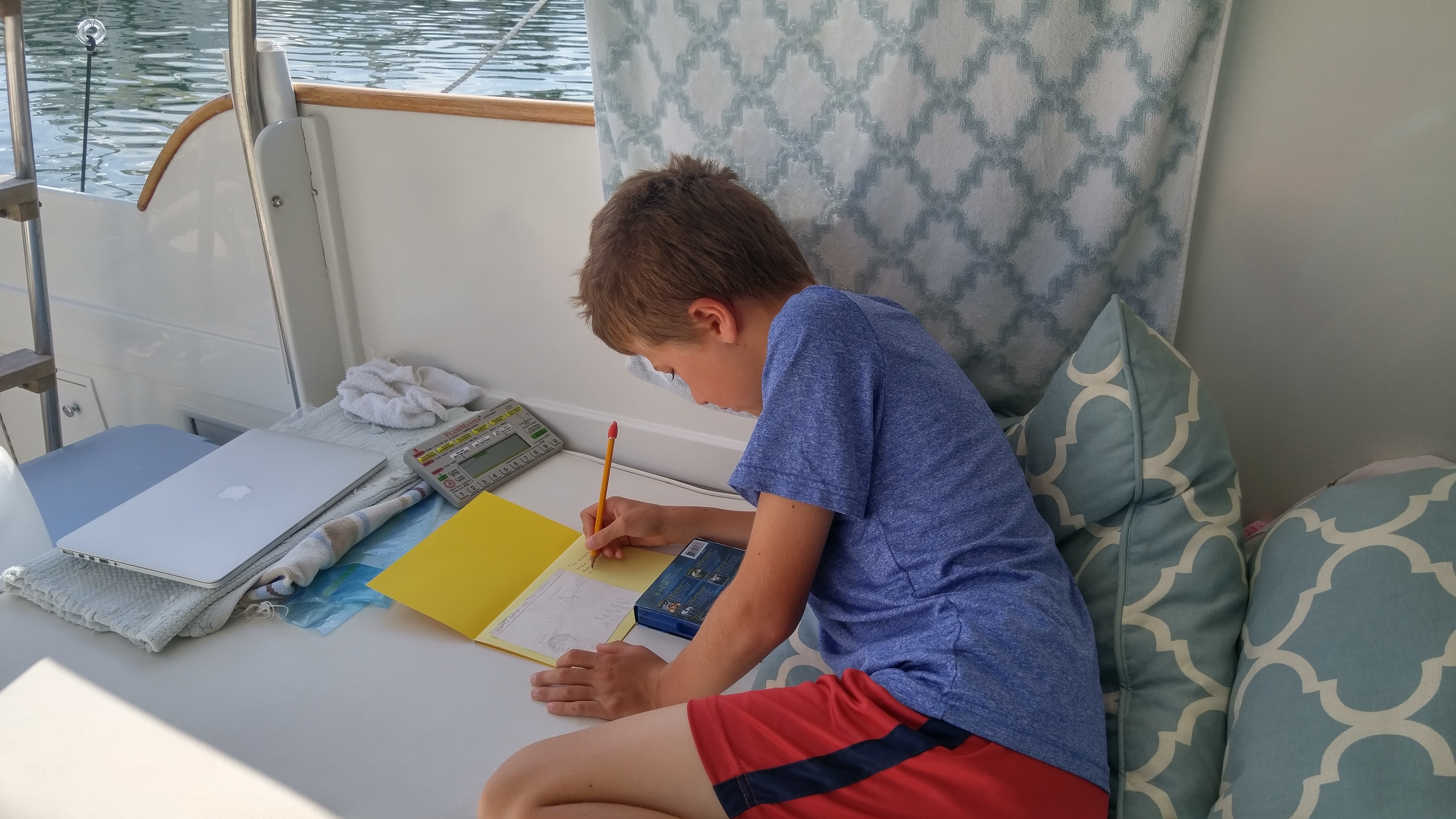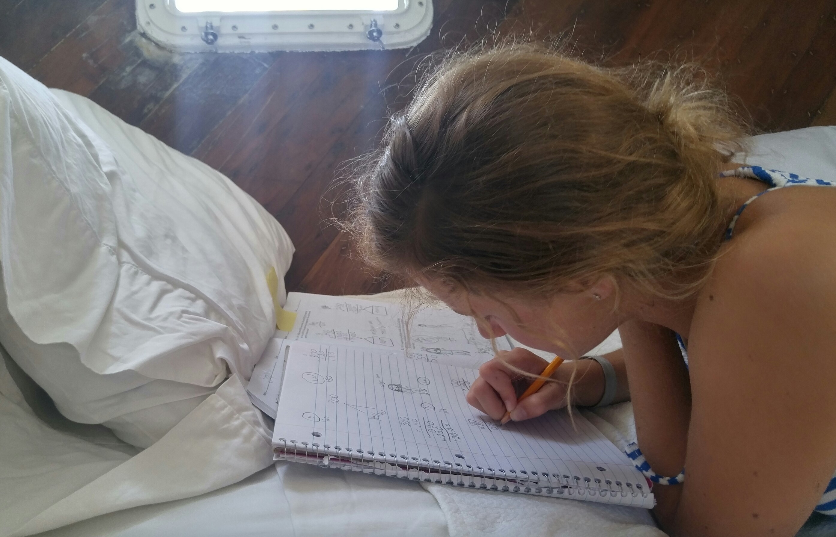 Our movement on the boat is determined by the tides, so the kids keep a daily tide chart, tracking high/low tides, sunrise/sunset and phases of the moon.  The kids are also making fish and bird “Field Guides” which are proving to be helpful!