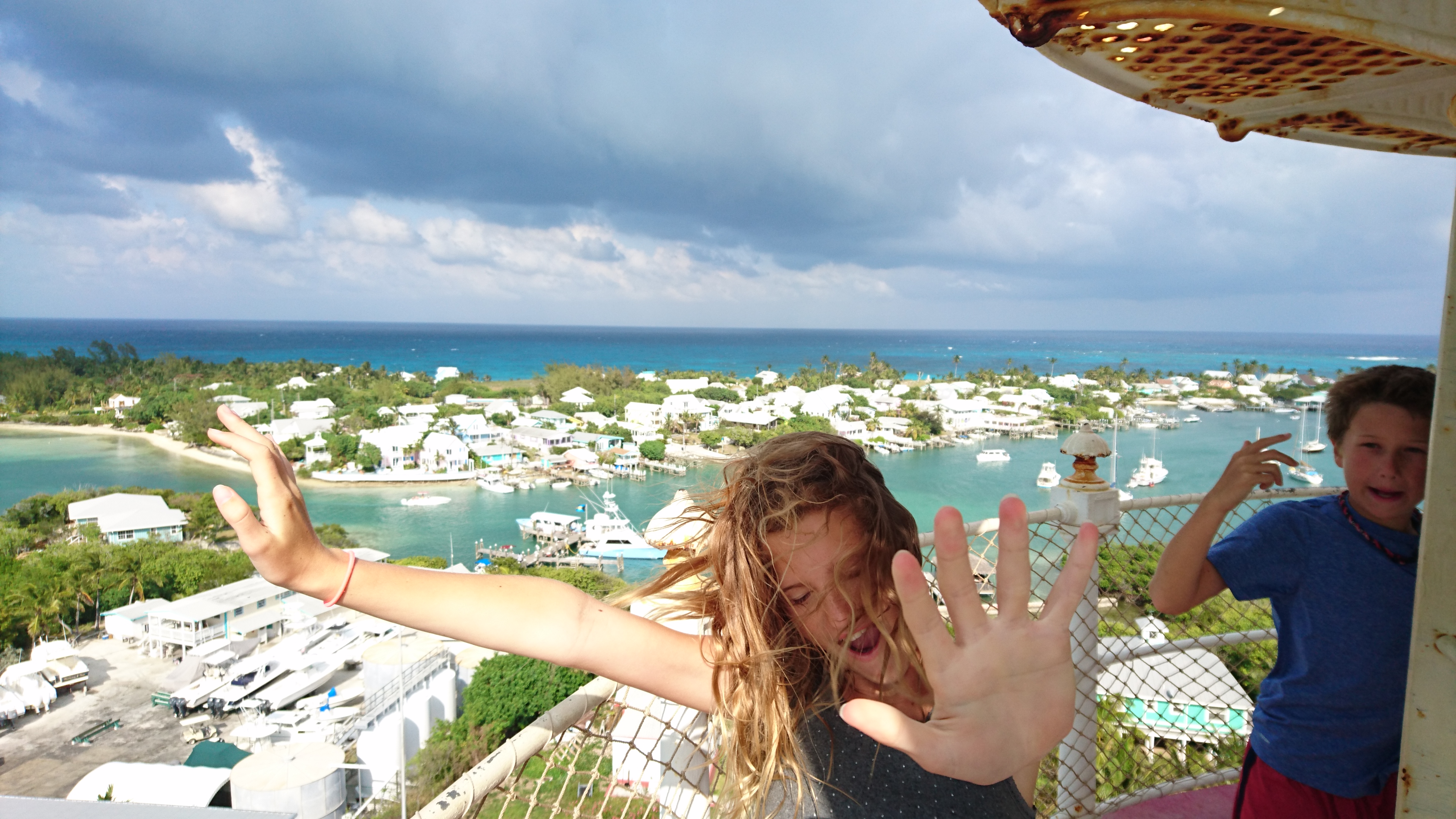 Views from the top were breathtaking, with the Sea of Abaco to the west and the Atlantic Ocean to the east. The barrier island between the two seas is called Elbow Cay, really a thin sliver of land with a natural harbor that was settled 175 years ago—wonderfully named Hopetown.