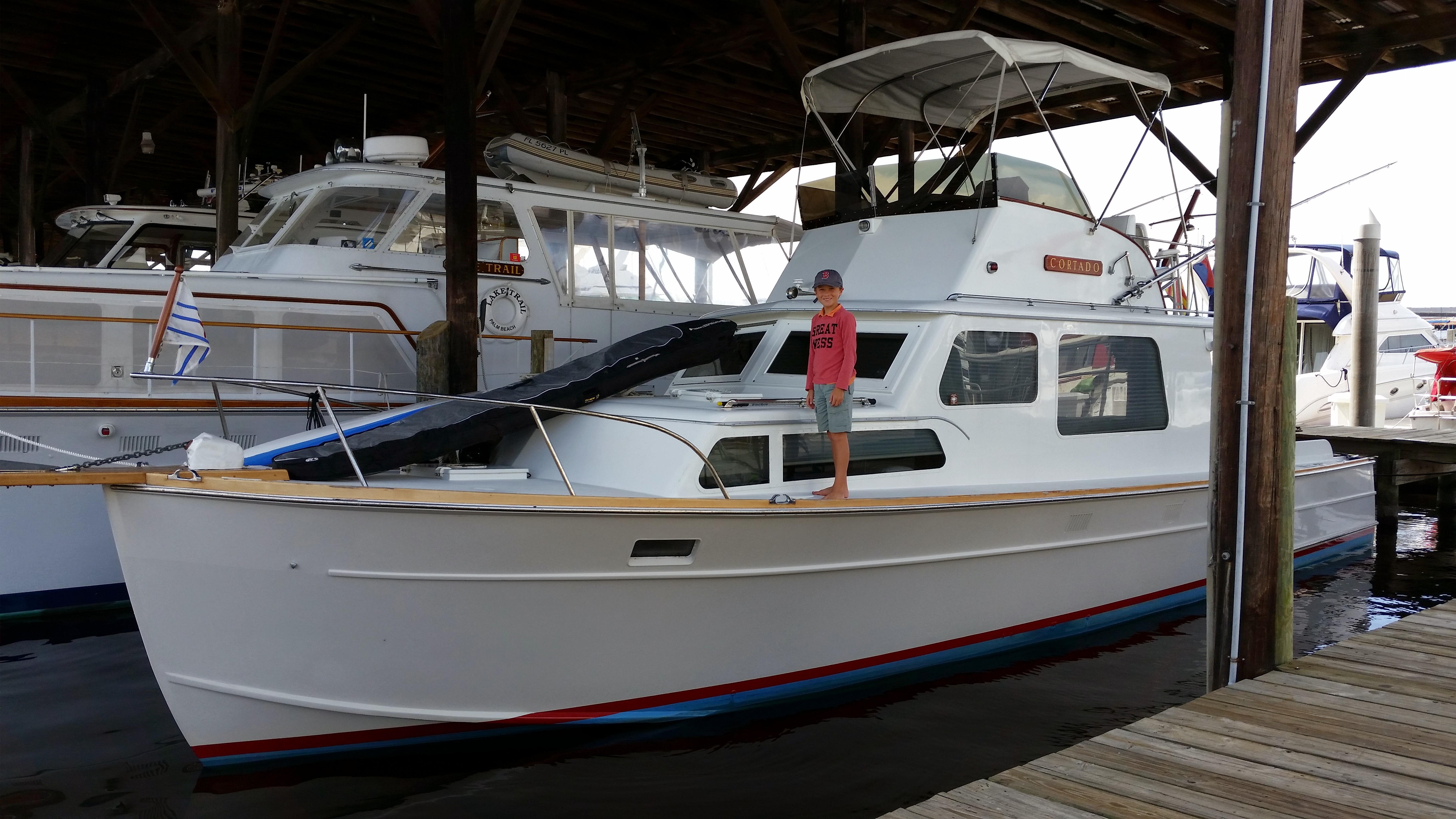 In 2013, we started looking in earnest for the right boat for us. We fell in love with the 1950’s quality and design of the Huckins brand and we carefully chose a boat that fit our young family and budget. New to power-boats, Tony and I were careful not to take on anything too big. Cortado was love-at-first-sight, complete with full sized bunk-beds for the kids.