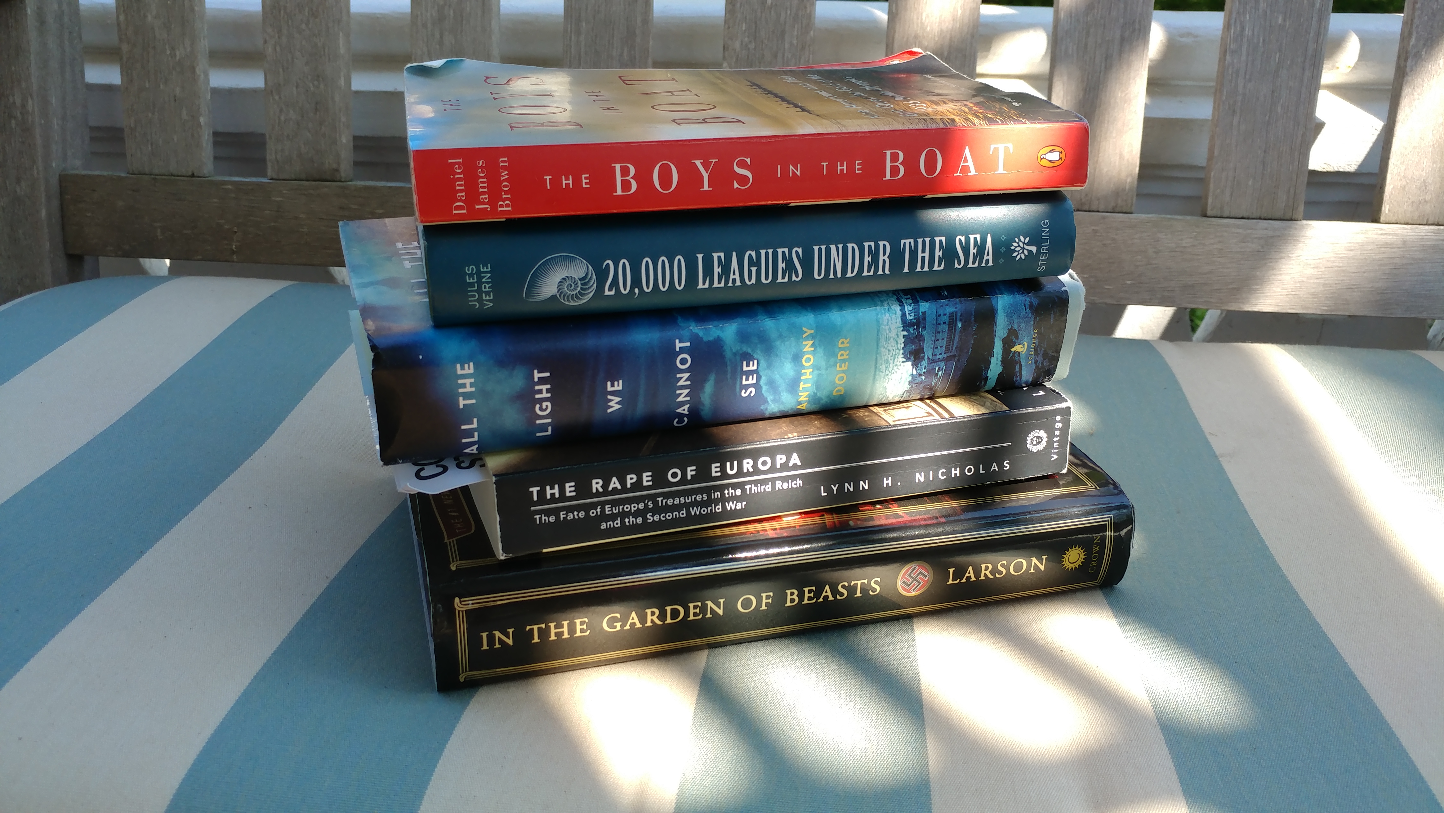 Some books below also cross-over into other groups, spanning subject matter once again in an interesting way. For example, “The Boys in the Boat” is a great action-filled sports story which also accidentally provides an eerie advance-look at Hitler in the early years of his rise and well-before WWII. What does Jules Verne’s “20,000 Leagues Under the Sea” have to do with WWII? Read “All the Light We Cannot See” by Anthony Doerr to find out – !
