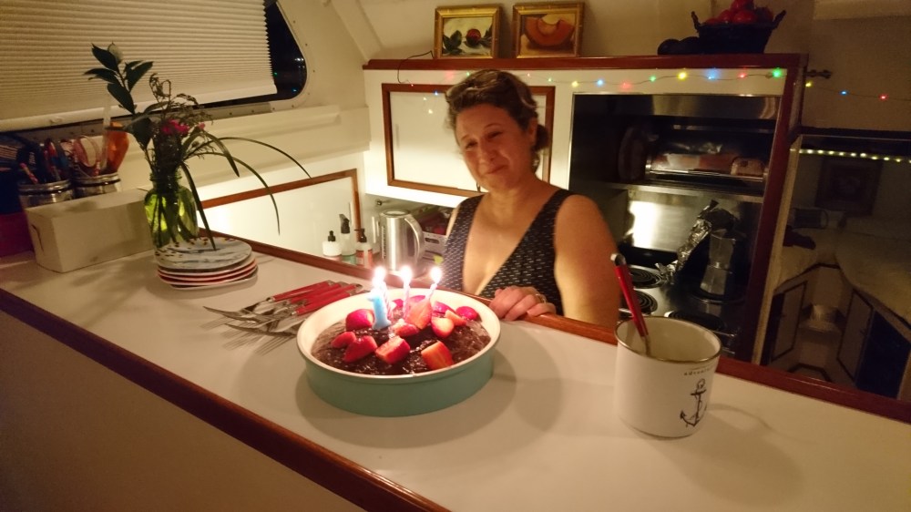 12.21 We baked our first birthday cake (Happy 14th Sophia!) in our new galley – Chocolate with berries and Vanilla ice cream.