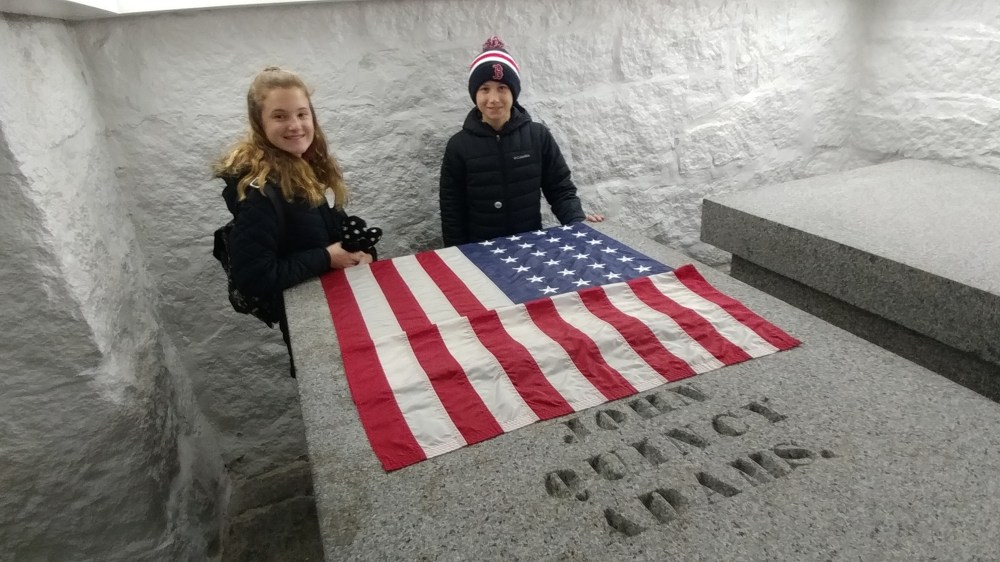 Inside the cold, underground crypt of our 2nd US President John Adams, with wife Abigail Adams, and 6th President John Quincy Adams and his wife, Louisa.