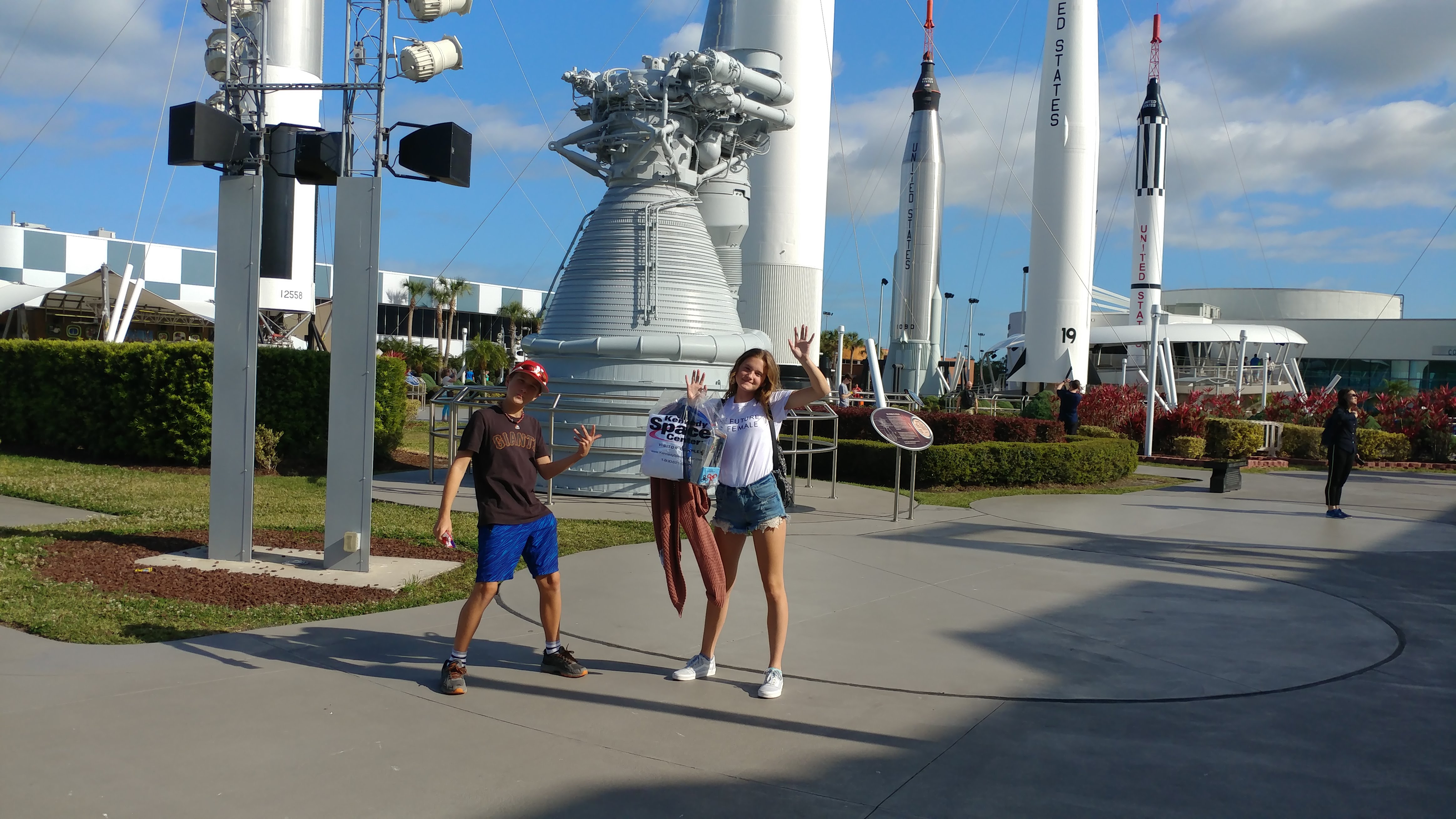 Stopping to pose in the Rocket Garden at NASA, Cape Canaveral.